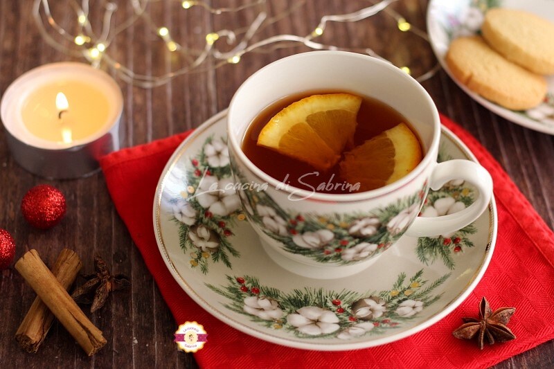 – Die Orangenscheiben, den Sternanis und den Zimt in einen kleinen Topf geben; eine Prise gemahlene Nelken hinzufügen und zum Kochen bringen, ab diesem Moment etwa 2 Minuten lang kochen. Die Flüssigkeit in die Teekanne abseihen, in der bereits die Beutel schwarzen Tee liegen, und abdecken. Alles etwa 4 Minuten ziehen lassen.