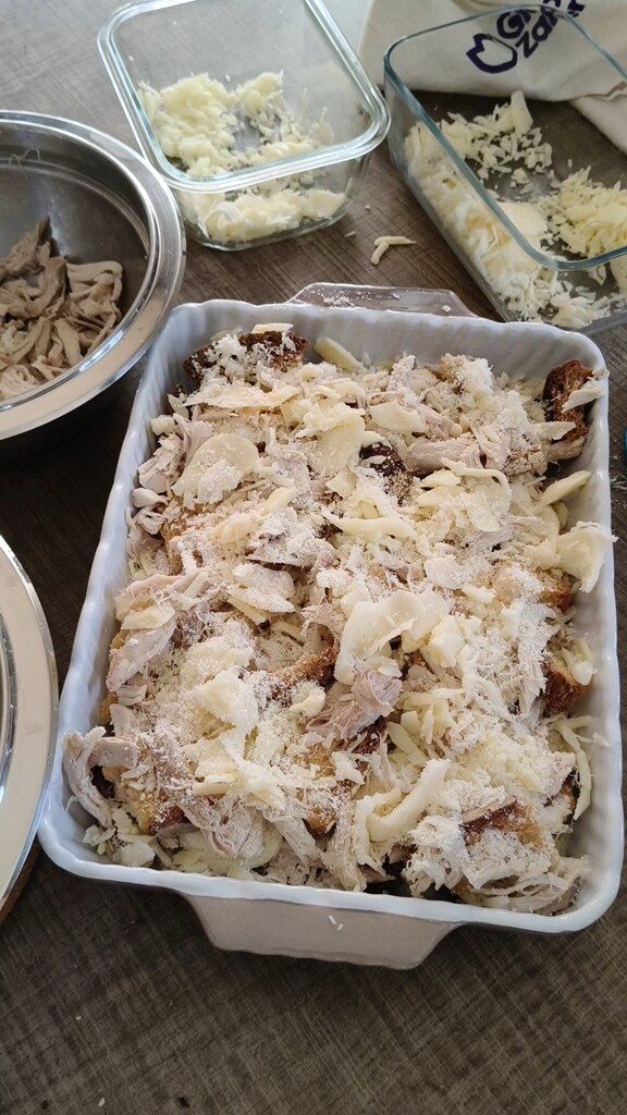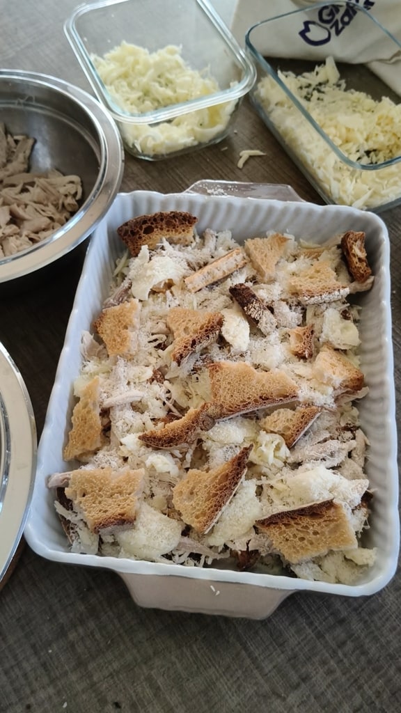 Fortfahren, bis die Zutaten aufgebraucht sind oder bis knapp unter den Rand der Auflaufform.
