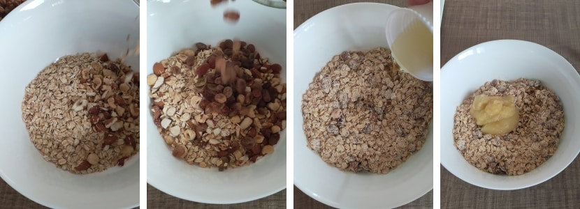 – Alle trockenen Zutaten in einer Schüssel mischen, dann Öl und Apfelmus hinzufügen. Gut verrühren