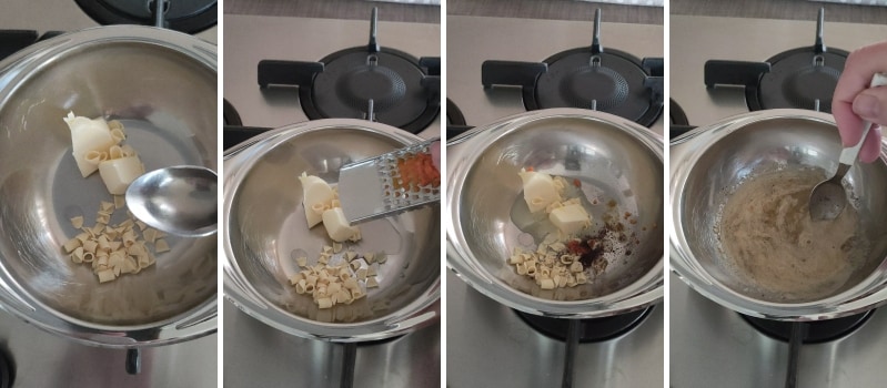 – Alle Zutaten in einen kleinen Topf geben, die Hitze auf niedrige Stufe stellen und sobald Butter und Schokolade geschmolzen sind, ausschalten. Im Kühlschrank abgedeckt aufbewahren.