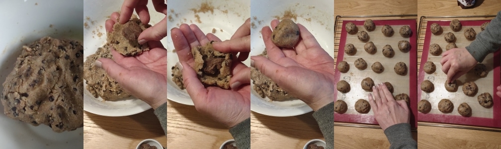 – Nehmen Sie den Teig zurück, trennen Sie Teile von etwa 30 Gramm ab, verbreiten Sie sie leicht in der Hand und füllen Sie sie mit dem gefrorenen Nutella. Gut verschließen, Kugeln formen und leicht andrücken. Wenn Sie möchten, können Sie noch ein paar Schokoladentropfen auf die Oberfläche geben.