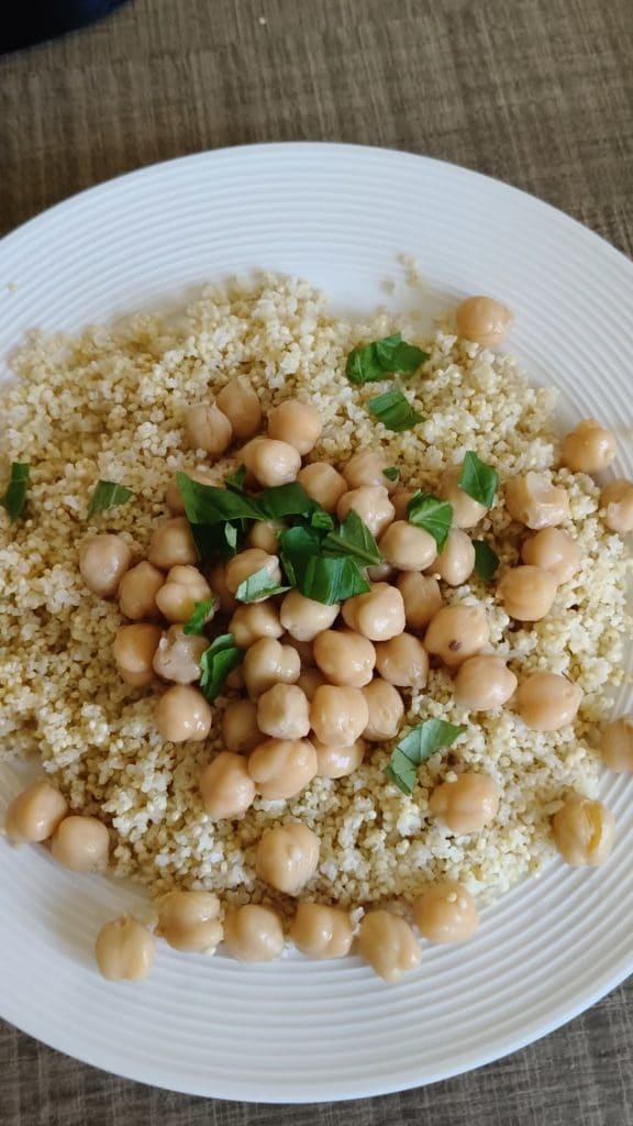 Die Hirse muss vorher gekocht werden, genauso wie du es mit Reis oder Couscous machen würdest. Du kannst sie im Bimby, im Topf oder mit der „Reiskocher“-Funktion des TM6 kochen.