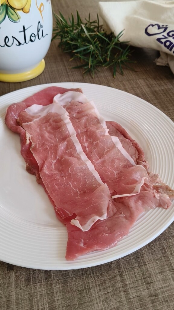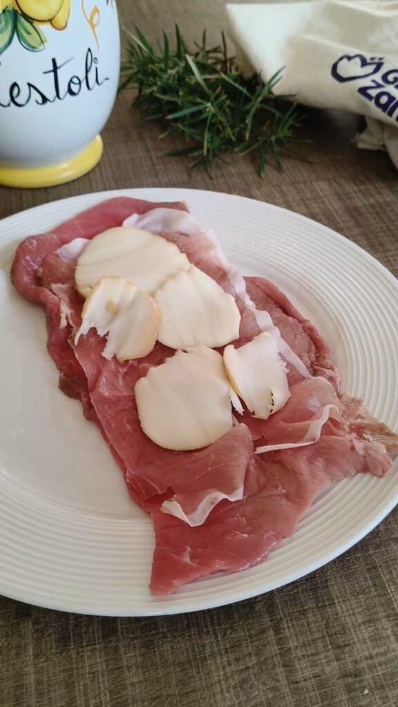 Die Fleischsorte können Sie selbst wählen; ich habe mich für zarte Kalbsfleischscheiben entschieden, aber man kann auch Truthahn verwenden.