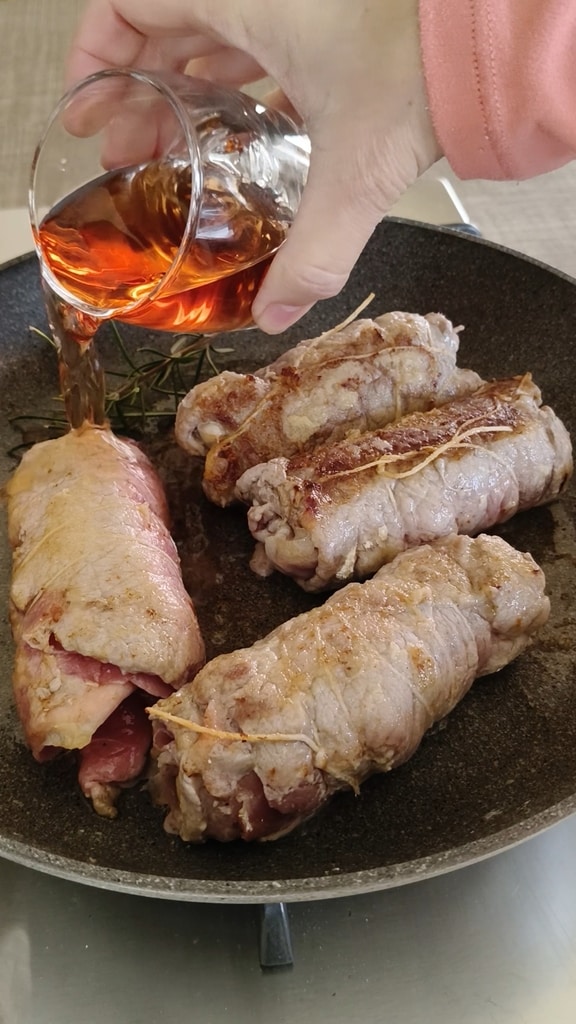 Das Salz in der Pfanne kann nach dem Verdampfen des Weins hinzugefügt werden oder, wie ich es normalerweise mache, stelle ich den Salzstreuer auf den Tisch und jeder wählt, wie viel Salz er hinzufügen möchte.