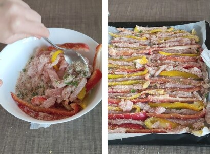 Das Rezept für die Zubereitung von Hähnchenstreifen und Paprika im Ofen ist wirklich schmackhaft und einfach zu machen.