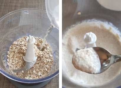 – Die Haferflocken und das Wasser in den Zerkleinerer geben und zu einem Teig mixen.
