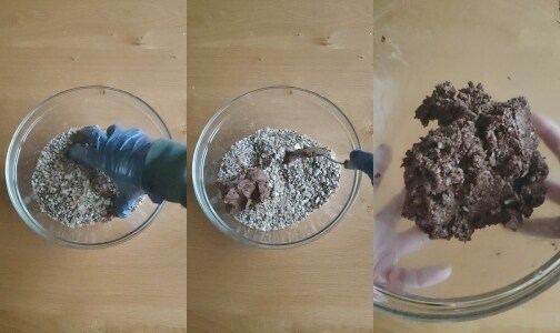 – Die Waffeln in eine große Schüssel geben und mit den Händen zerbröseln; den Aufstrich hinzufügen und die Zutaten miteinander vermischen.