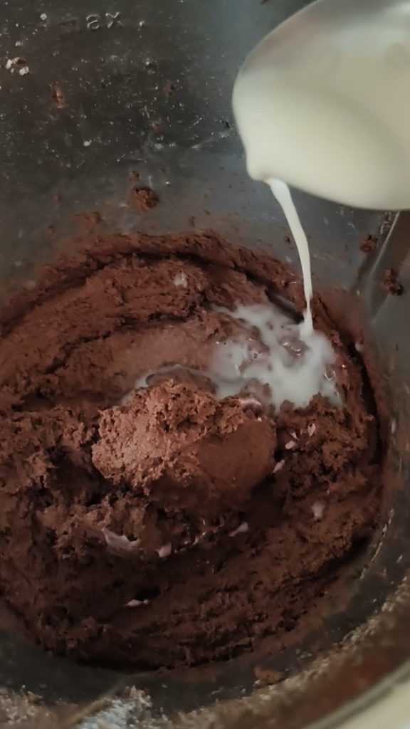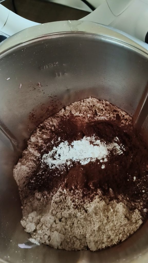 Kakao und Backpulver hinzufügen. 30 Sek. Stufe 4