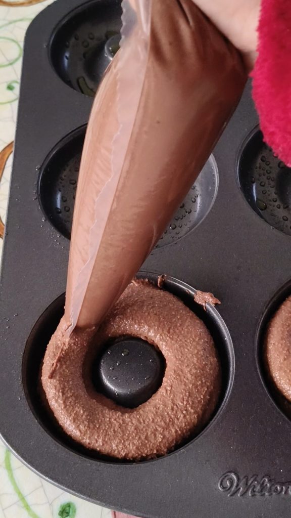 Um diese Ringe von den klassischen Schokoladenversionen abzuheben, habe ich mich entschieden, die Schokotropfen nicht in den Teig zu geben, sondern sie nur auf der Oberfläche zusammen mit gehackten Pistazien zu verteilen.