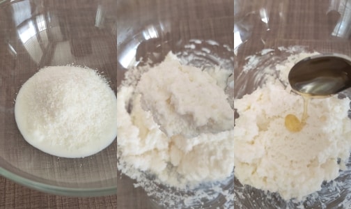 • – Geben Sie in eine Schüssel, das Joghurt und die Kokosnuss, mischen und fügen Sie den Honig hinzu.