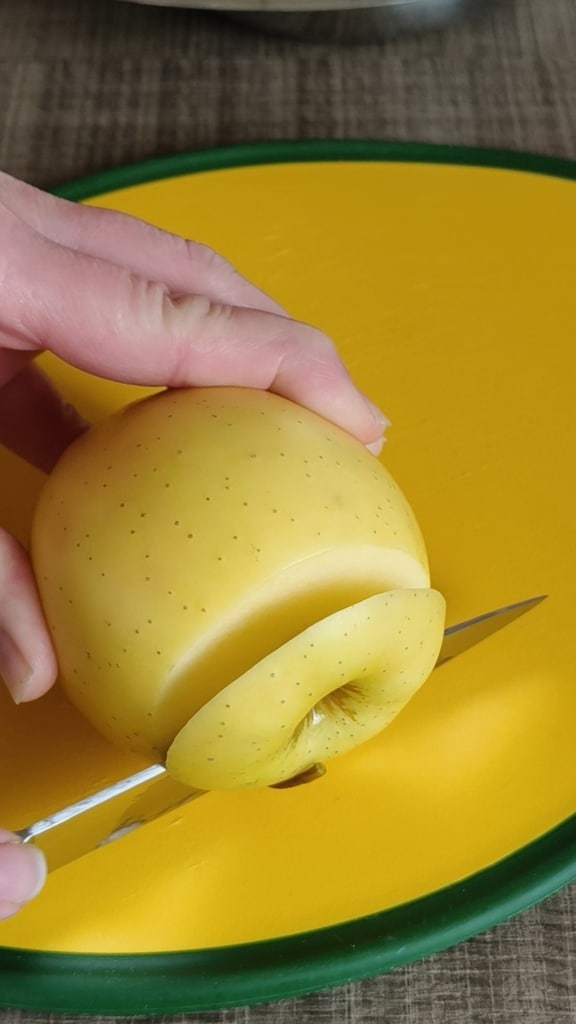 Wenn sich die Stiele von den Deckeln lösen, werfen Sie sie nicht weg, sondern verwenden Sie sie nach dem Kochen, um die Äpfel zu dekorieren, indem Sie sie wieder einsetzen.
