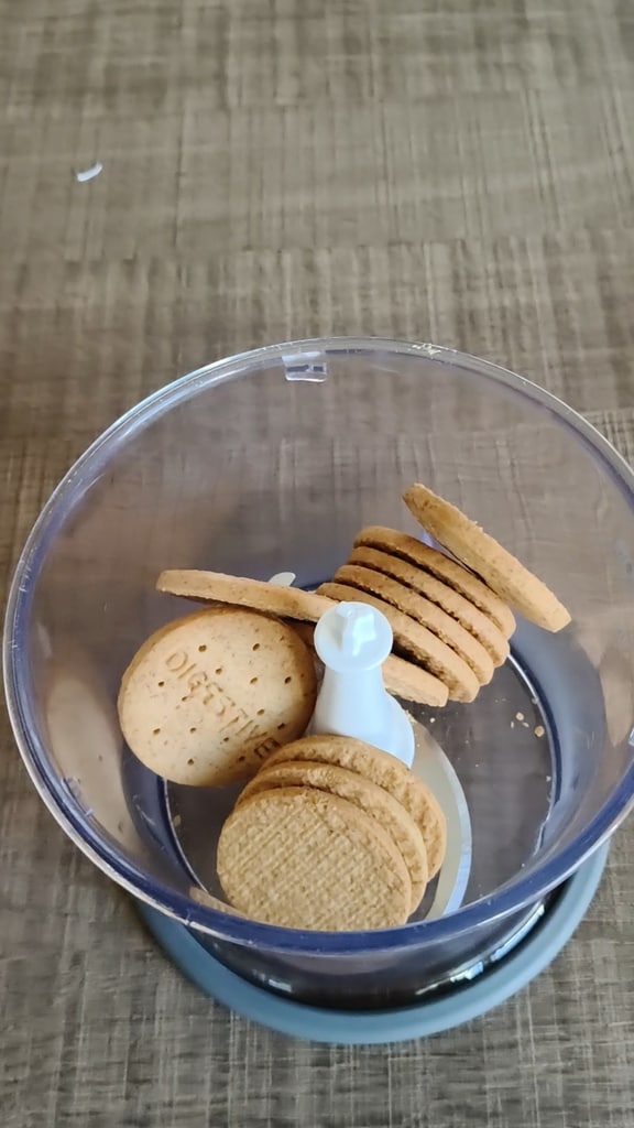 Die Kekse in das Glas des Zerkleinerers geben und pulverisieren.