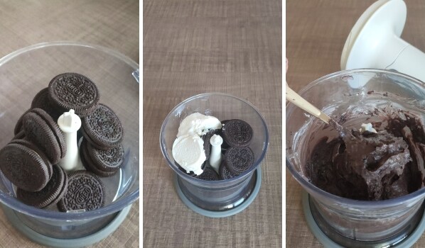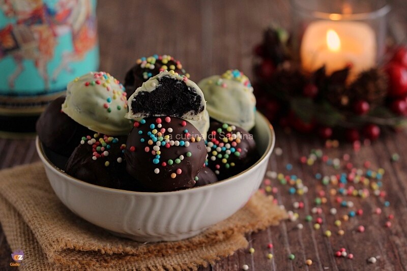 Es handelt sich um ein Rezept, bei dem die Hauptdarsteller die Oreo-Kekse sind, die zusammen mit dem Ricotta püriert werden und eine cremige Füllung bilden, die nach einer kurzen Ruhezeit im Kühlschrank geformt und in Schokolade getaucht werden kann.