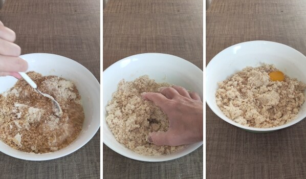 – Die Zutaten kneten, dann das Eigelb hinzufügen und den Teig fertigstellen.
