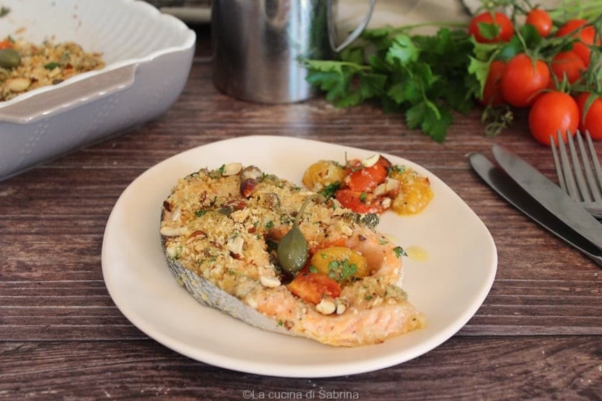 Ein schmackhaftes Hauptgericht auf Lachsbasis, das, wie wir wissen, reich an Omega-3, Kirschtomaten und Mandeln ist. Und gerade die Mandeln sind das Besondere an diesem köstlichen Lachs nach Isolana-Art.