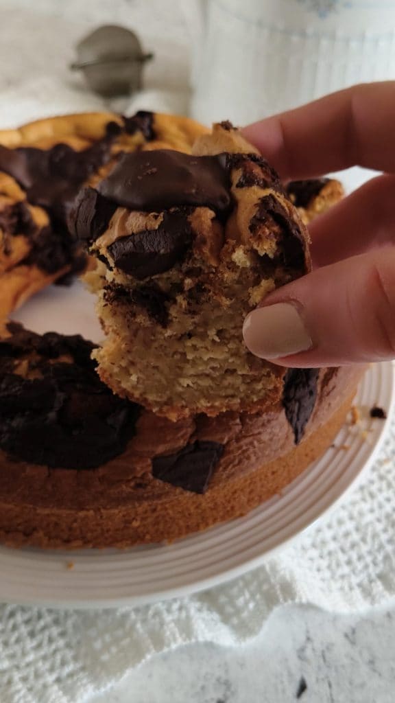 Wenn du einen weichen und leichten Frühstückskuchen suchst, ist mein Schokoladen- und Hafermehlkranzkuchen perfekt für dich. Er wird mit Reisöl, Joghurt und Erythrit anstelle von Zucker zubereitet: ein einfaches und rustikales Rezept, ideal für alle, die kalorienärmere, aber dennoch köstliche Kuchen lieben.
