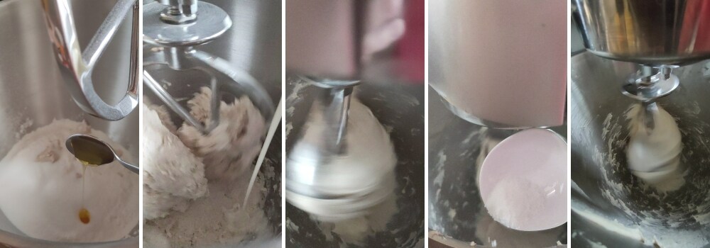 Die Küchenmaschine ist für diese Art von Teig nützlich. Aber auch eine gute Brotmaschine kann helfen.