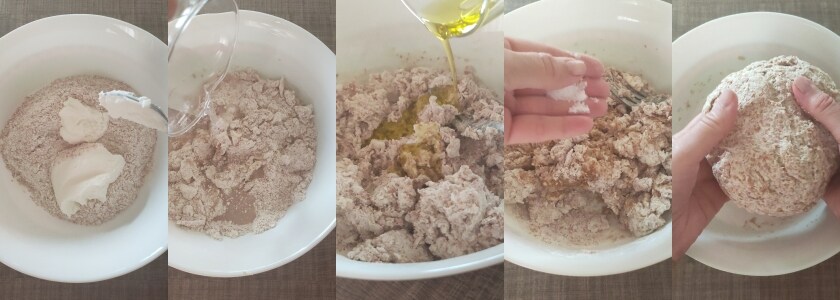 – Gib das Mehl in eine Schüssel, füge den Joghurt und die anderen Zutaten hinzu und knete den Teig.