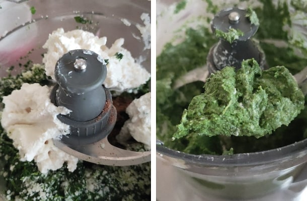 – Den gut ausgedrückten Spinat, den Parmesan und die Muskatnuss in den Mixer geben.
