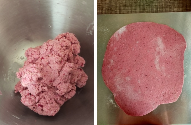 Für einen Anlass wie den Valentinstag können die rosa Ravioli mit magerer Füllung den Unterschied machen, wenn Sie daran denken, das Mittag- oder Abendessen selbst zuzubereiten … denn Sie können sie im Voraus vorbereiten und im Kühlschrank aufbewahren … oder wie ich … am Tag vorher habe ich den Teig vorbereitet, in Frischhaltefolie gewickelt und in den Kühlschrank gelegt. Am nächsten Tag habe ich die Füllung zubereitet und den Teig ausgerollt…
