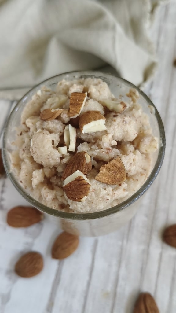 Um alles zu versehen, habe ich eine Zimtaufguss gewählt, die perfekt mit dem intensiven Geschmack der Mandel harmoniert. Optional kann man einen Esslöffel Rum oder Amaretto-Likör hinzufügen, für eine erwachsenere aromatische Note. Das Schöne an dieser Granita ist, dass sie sich einige Tage im Gefrierschrank hält und auch als Nachtisch, Sommerfrühstück oder leichter Snack serviert werden kann.