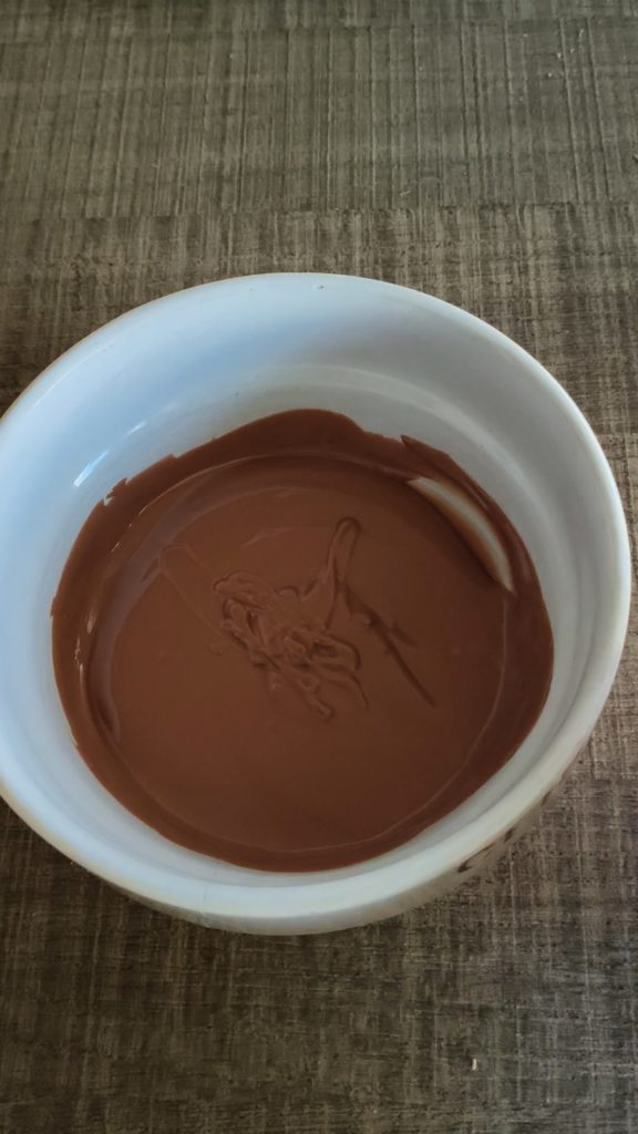 Die Milchschokolade im Wasserbad oder in der Mikrowelle schmelzen.