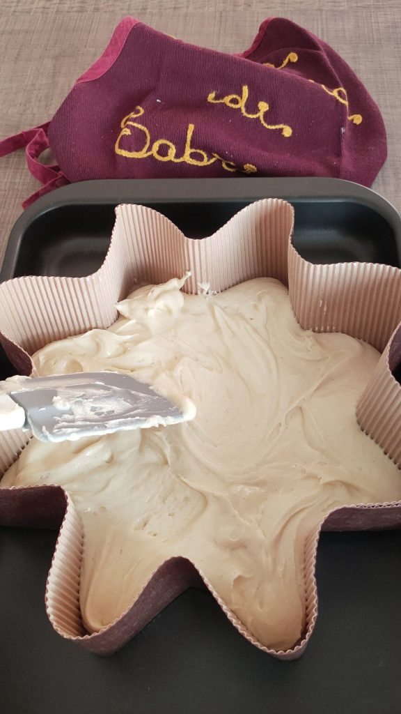 – Den Teig in die Form gießen, die zuvor auf ein Backblech gestellt wurde, und etwa 40 Minuten backen, immer die Stäbchenprobe machen.