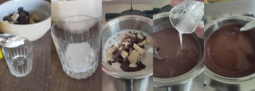 – Um die Schokoladensauce in 5 Minuten zu machen, lesen Sie hier, in dieser Version habe ich nur eine Sorte Schokolade anstelle von zwei verwendet.