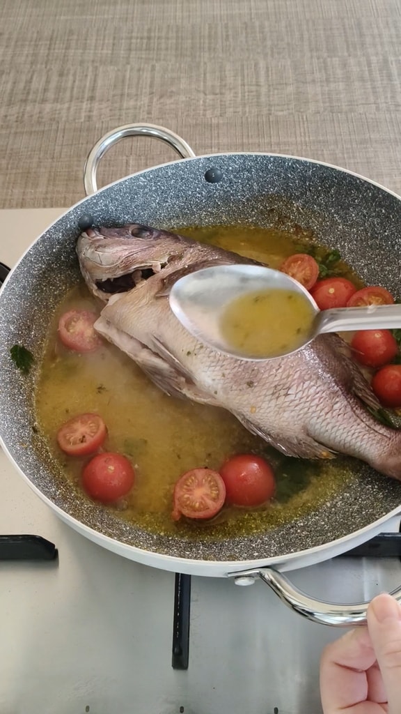 Natürlich kann man auch andere Fischsorten verwenden, wie Wolfsbarsch oder Dorade, und das Gericht kann mit einer Beilage aus Kartoffeln serviert werden, aber auch ein gutes geröstetes Brot zum Tunken ist nicht zu verachten!