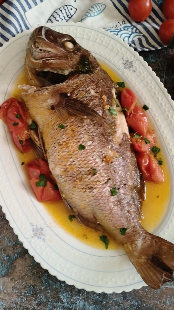 Die Zahnbrasse im Topf nach Wasser Art ist ein Rezept, das die ganze Frische des Meeres in sich vereint, perfekt für alle, die ein schmackhaftes, gesundes und einfach zuzubereitendes Gericht suchen. Mit wenigen Zutaten und in einer halben Stunde bringst du ein Gericht auf den Tisch, das nach Meer und Tradition duftet und jeden Gaumen überraschen kann. Lass dich nicht von der Einfachheit täuschen: Die Kombination aus frischem Fisch, Kirschtomaten, Knoblauch, Öl und einem Hauch Petersilie erzeugt eine Geschmacksexplosion, die dich dazu verleiten wird, es immer wieder zu machen.