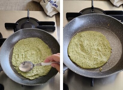 – Die Pfanne einfetten, erhitzen und dann jeweils eine Kelle Teig hineingeben.