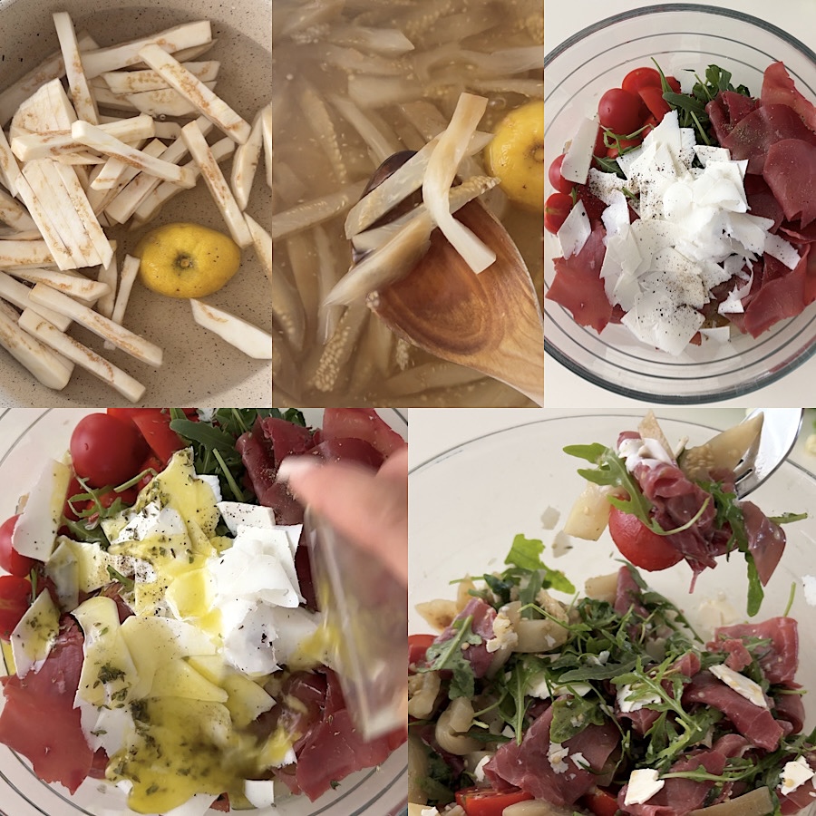 Gut durchmischen und schon ist unser Auberginen- und Bresaola-Salat fertig.