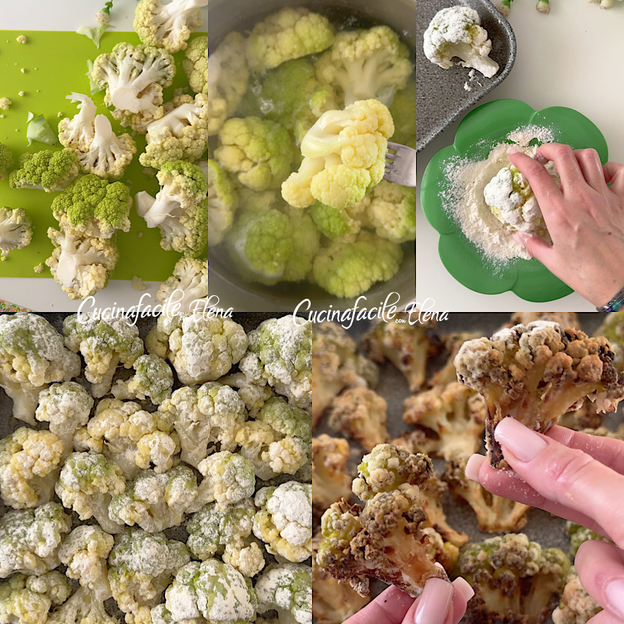 Der im Ofen gebratene Blumenkohl ist ein Rezept, das ich liebe, eines meiner Lieblingsrezepte, um Blumenkohl zu kochen. Nach den Festtagen braucht man leichtere, aber dennoch schmackhafte und raffinierte Rezepte, und dieses ist definitiv eines, das ich am häufigsten zubereite. Jedes Mal, wenn ich es zubereite, könnte ich einen ganzen allein essen! Der im Ofen gebratene Blumenkohl, wie der Titel schon sagt, scheint frittiert zu sein, wird aber im Ofen (oder in der Heißluftfritteuse) mit einem Spritzer Öl zubereitet, dank einer Zutat sind sie goldbraun, knusprig, leicht und super schmackhaft, perfekt als Vorspeise, Beilage oder vegetarisches (aber auch veganes und glutenfreies) Hauptgericht, ihr müsst sie unbedingt ausprobieren, sie werden auch denen sehr gefallen, die normalerweise nicht viel für Blumenkohl übrig haben, meine Tochter liebt sie!
