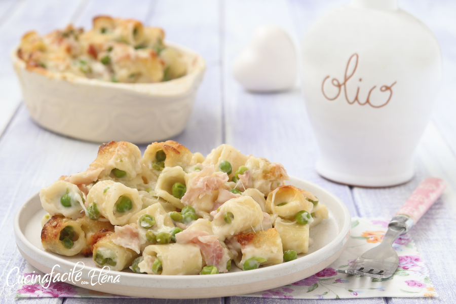 Der Nudelauflauf mit Schinken und Erbsen ist ein einfaches und wirklich köstliches Hauptgericht. Schinken und Erbsen (ohne Sahne :D) sind eine klassische und zeitlose Kombination, und ich habe diesen Nudelauflauf mit Blick auf das Oster-Menü gemacht, ideal für das Mittagessen mit Familie oder Freunden. Cremig, schmelzend und sehr lecker, mit meiner leichten Béchamel ohne Butter und Mehl, lässt sich der Nudelauflauf mit Schinken und Erbsen schnell zubereiten und kann auch im Voraus hergestellt werden, sogar am Vortag, um ihn dann kurz vor dem Servieren zu backen. Bei uns zu Hause war er ein Hit!