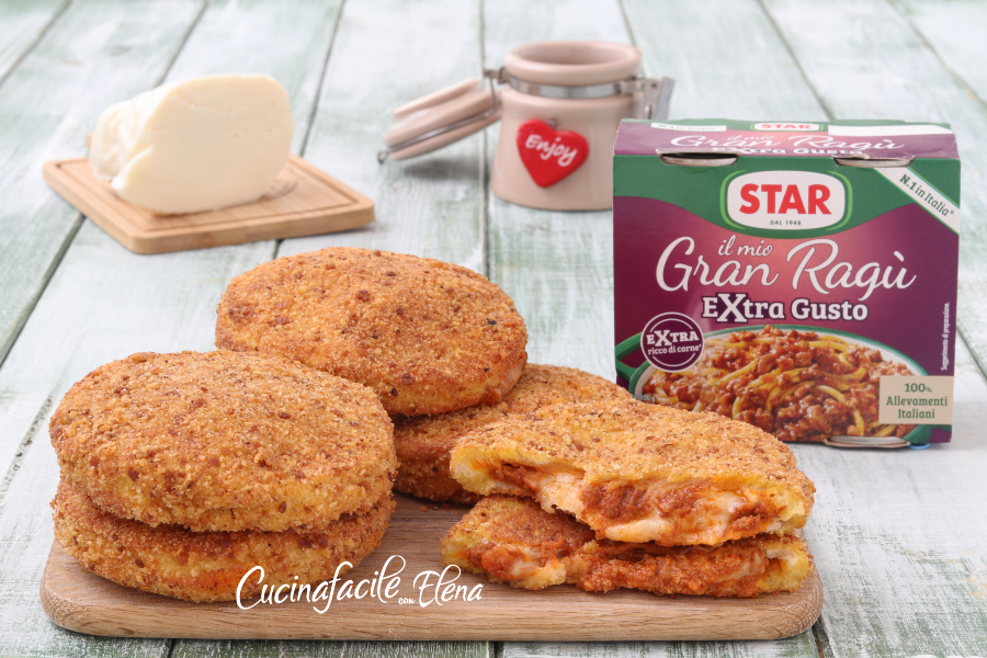 Die Schnitzel mit Ragù sind ein superschnelles Rezept, sehr einfach zuzubereiten und wirklich köstlich. Ich hatte Lust auf ein raffiniertes Abendessen und habe Schnitzel aus Toastbrot zubereitet, gefüllt mit Mozzarella, einer Prise Parmesan und Hackfleischragout. Ich habe Il Mio Gran Ragù Star Extra Gusto verwendet, ein Ragù aus 100% italienischem Fleisch, das wie hausgemacht schmeckt. Sein cremiger und schmackhafter Geschmack macht diese Schnitzel mit Ragù wirklich köstlich! Sie sind perfekt als Vorspeise oder Hauptgericht, auch ideal für eine Party, ein Buffet oder einen Aperitif. Sie haben eine cremige und schmelzende Füllung und werden im Ofen gebacken, aber wenn Sie es vorziehen, können Sie sie auch frittieren, in der Heißluftfritteuse oder in der Pfanne mit etwas Öl zubereiten. In jedem Fall werden sie wörtlich weggehen!