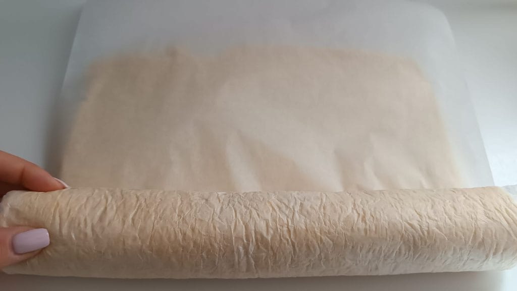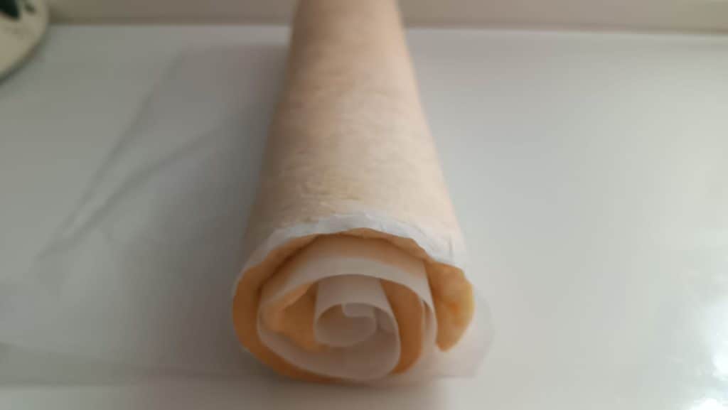 • Mit Hilfe des Backpapiers vorsichtig aufrollen.