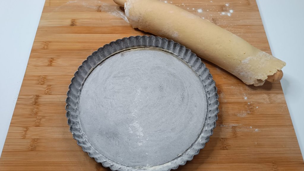 Den Mürbeteig auf einer bemehlten Fläche ausrollen
