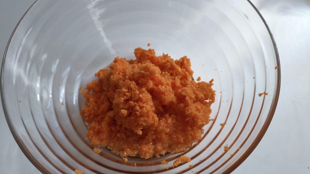 Nachdem du die rohen Karotten püriert hast, füge Öl und Orangensaft hinzu