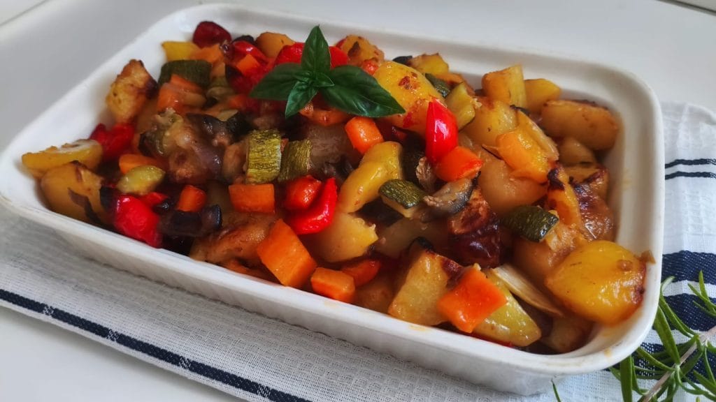 Mädels, heute erzähle ich euch, wie ich meine gebackene Caponata zubereite, eine sehr einfache und super leckere Version, wenn ihr Gemüse mögt. Wenn ihr ein einfaches Rezept für gebackene Caponata sucht, seid ihr hier richtig! Perfekt für diejenigen, die wenig Zeit haben, aber nicht auf den authentischen Geschmack der mediterranen Gemüse verzichten wollen.