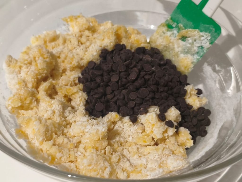 Das Reismehl verleiht eine zarte Konsistenz, die Kokosnuss macht sie duftend und leicht feucht, während die Schokoladenstückchen… nun ja, den Rest erledigen.