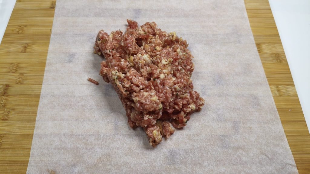 Geben Sie in eine Schüssel das Hackfleisch und fügen Sie den Parmesan, die Petersilie, das Ei und das Salz hinzu