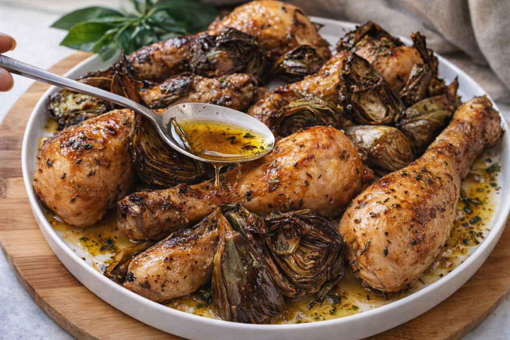 HÄHNCHENSCHENKEL AUS DEM OFEN MIT ARTISCHOCKEN