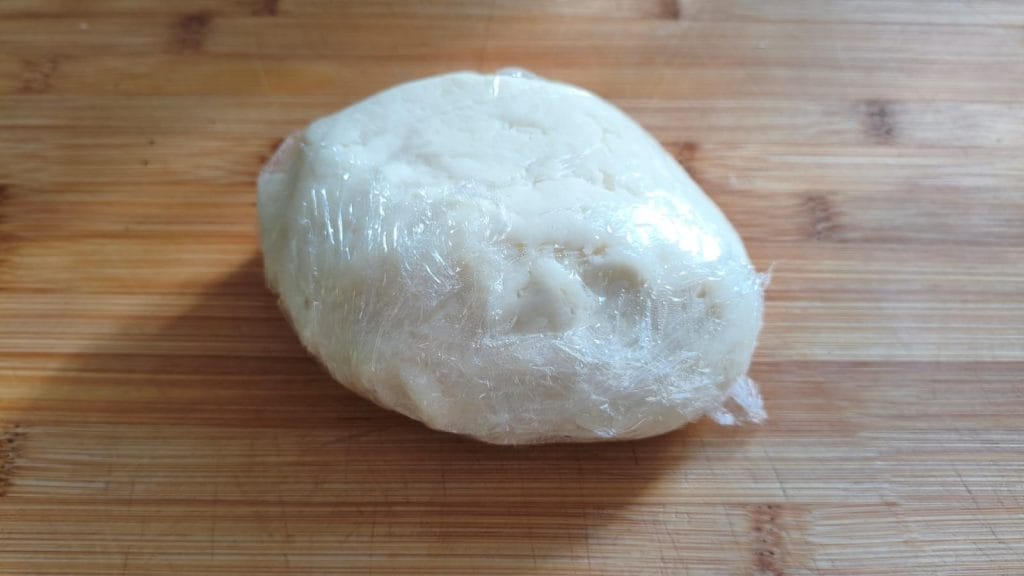 • Den Teig in Frischhaltefolie wickeln und abkühlen lassen.