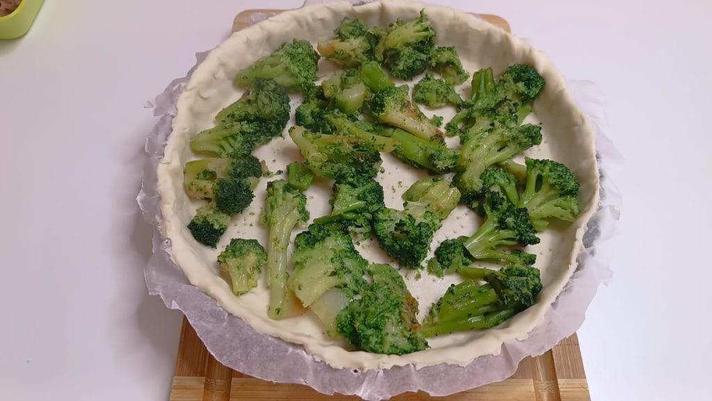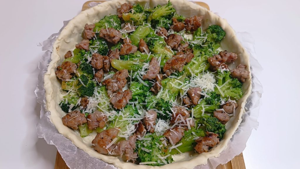 Man beginnt damit, den Brokkoli und die Wurst zu kochen, indem man sie mit einem Schuss Olivenöl und einer Knoblauchzehe würzt, um den Geschmack zu betonen. Sobald sie fertig sind, werden sie mit in Würfel geschnittenem Galbanino vermischt und gleichmäßig auf dem bereits in einer Form ausgebreiteten Blätterteig verteilt. Man muss nur noch die Ränder schließen, wenn man möchte, kann man sie mit etwas verquirltem Ei bestreichen, um glänzende Ränder zu erhalten, und sie dann in den Ofen schieben: Der Duft, der sich ausbreitet, wird unwiderstehlich sein.