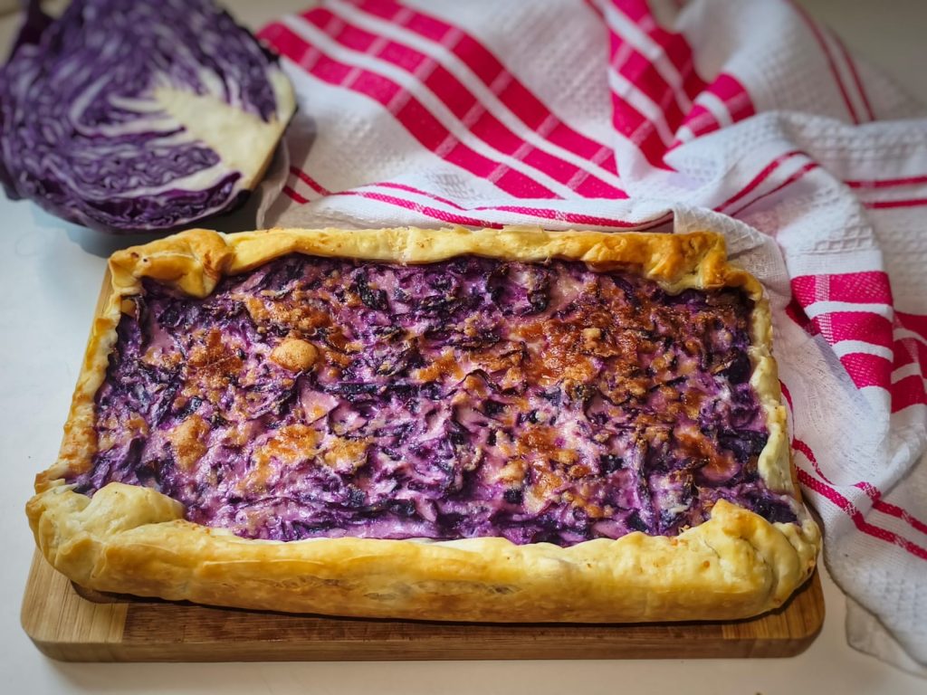 Die herzhafte Torte mit Rotkohl und Ricotta ist fertig! 😊