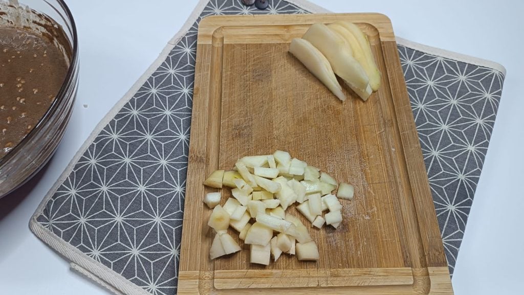 Die Birnenwürfel zur Mischung hinzufügen und mischen