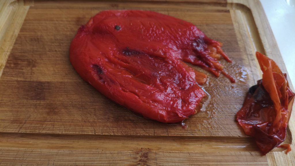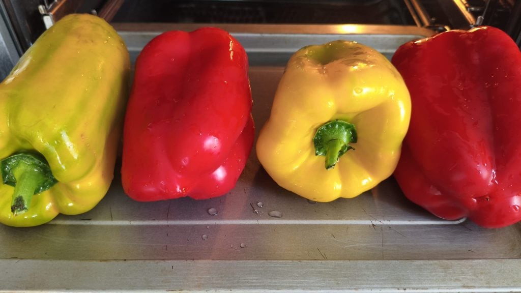 Um die Paprika-Röllchen vorzubereiten, beginnen Sie damit, die Paprika ganz zu reinigen und im Ofen bei 200° für 40 Minuten zu garen.