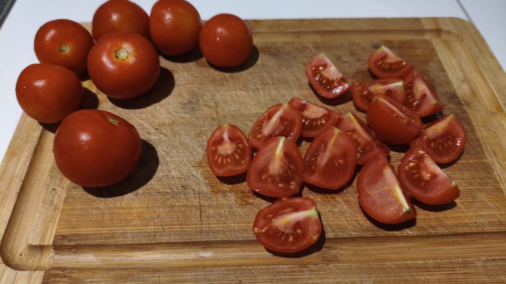 In der Zwischenzeit die Kirschtomaten waschen und schneiden. In eine Schüssel mit einem Schuss Öl, Salz und frischem Basilikum geben. Mischen und den Thunfisch hinzufügen.