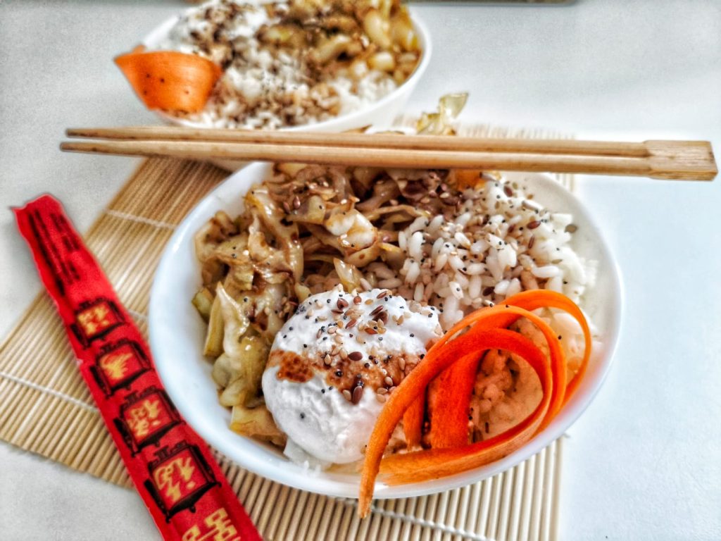 Heute hatte ich wirklich keine Lust, das übliche Risotto zuzubereiten. Kennst du diese Tage, an denen du den Kühlschrank öffnest, hineinschaust und denkst: „Nein, bitte etwas anderes“? So war es bei mir. Ich hatte Reis, ein bisschen Wirsing, der schon viel zu lange da war, und ein paar frische Eier. Und plötzlich kam mir die Idee: Warum nicht alles in eine komplette und ausgewogene Bowl verwandeln, die dich leicht, aber zufrieden fühlen lässt und perfekt für ein schnelles, aber nahrhaftes Mittagessen ist?