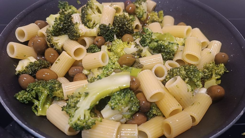 Die Pasta mit Brokkoli, zusätzlich mit Oliven und Kapern, ist eine Sinfonie mediterraner Aromen in einem einzigartigen Gericht.